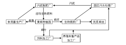 传统的黄麻加工主要是将黄麻的麻皮制成麻丝,将麻丝卖给纺织工厂,麻骨、麻叶与废水被直接投放到环境中,造成很大污染与浪费,下图为某黄麻种植园清洁生产模式图,完成各题。