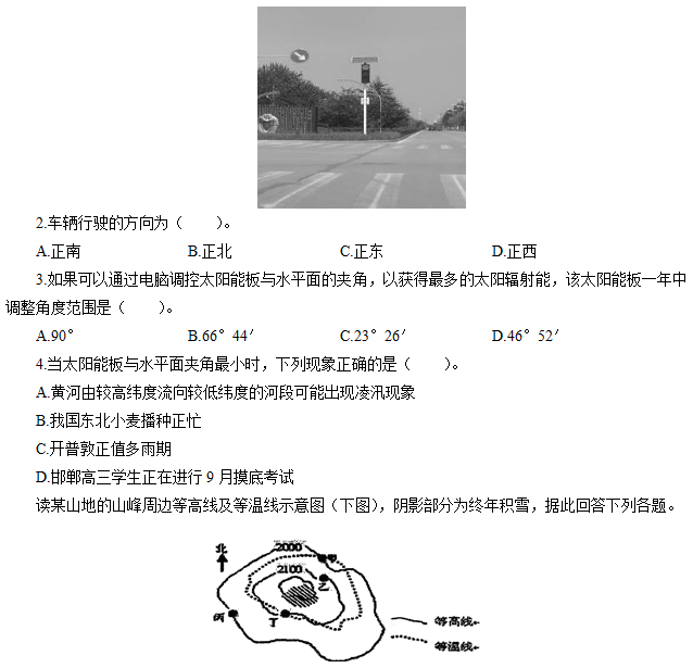 李某乘车在邯郸街道上等红灯时,随手拍下了前方的太阳能红绿灯。下图为拍摄的红绿灯照片,据此完成下面小题。