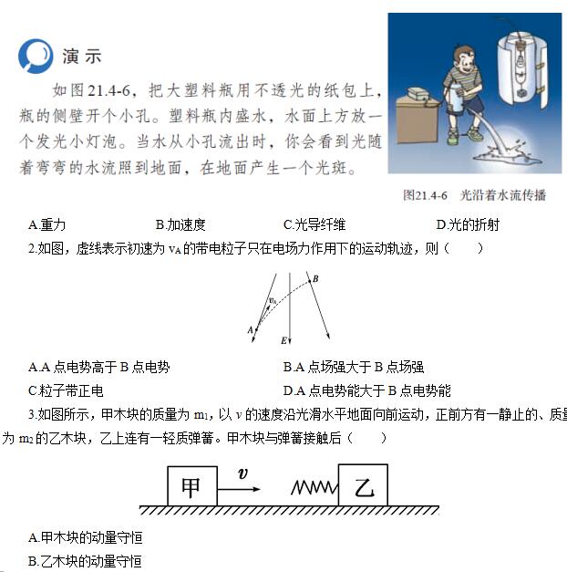 1.如图为初中物理某教材的片段,该片段用于演示的是( )