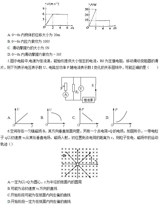 4.放在粗糙水平地面上的物体受到水平拉力的作用,在0~6s内其速度与时间图象和该拉力的功率与时间的图象如图所示,下列说法正确的是( )