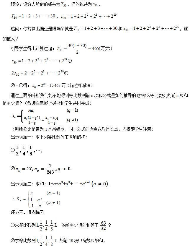 小结:同学讨论总结这节课学习的内容,并提出这节课学习的疑问,并总结等比数列求的公式.