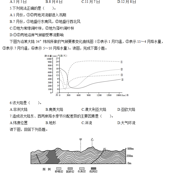 A.气候 B.水文 C.地形 D.生物