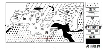 读地中海周边植被分布示意图。回答下面小题。