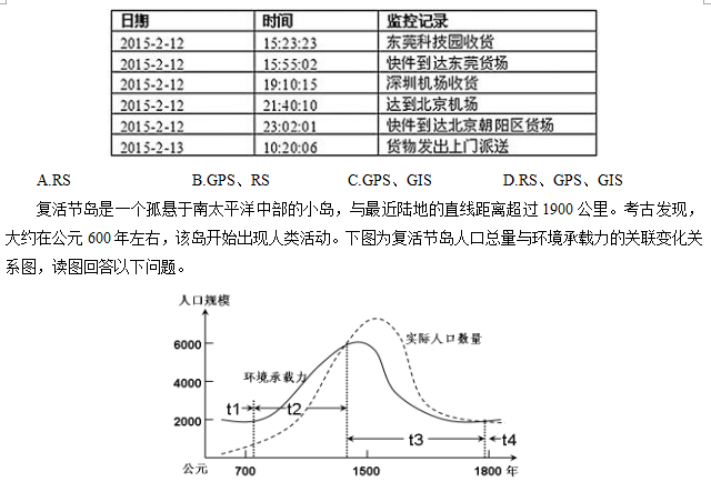 17.复活节岛人口数量与环境承载力的关联变化说明( )。