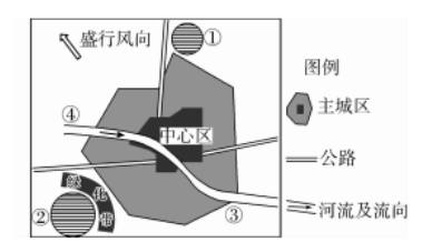 28.下图为某城市示意图,图中①是电子工业区,周围有众多的高等院校,②是石油化工厂。读图完成下列各题。
