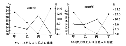 14.2013年11月15日,十八届三中全会通过的《中共中央关于全面深化改革若干重大问题的决定》对外发布,其中提到“坚持计划生育的基本国策,启动实施一方是独生子女的夫妇可生育两个孩子的政策”,这标志着“单独二孩”政策将正式实施。下图是我国甲、乙、丙、丁四省(区)不同时期人口年龄结构图。最有可能首先实施“单独两胎”政策的省(区)是( )。