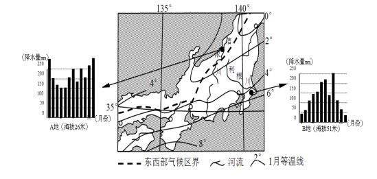 (2)对比分析信浓川和利根川洪涝灾害的不同点及产生的气象原因。(6分)