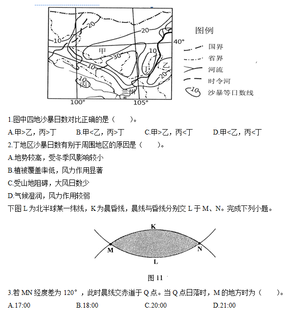 下图示意某地区沙暴日数,读图完成各题。
