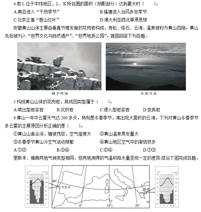 7.关于两地气候特点的叙述正确的是( )。