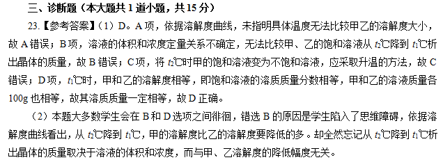 12.【答案】C。解析:义务教育阶段化学教科书的内容编排特点是:内容选取上,落实《课程标准》,突显五大主题;内容编排多线索共存,外显三维目标;内容逻辑符合学生认知发展顺序。并不包括内容在实际案例的选择上,紧密联系学生生活实际,故选C。