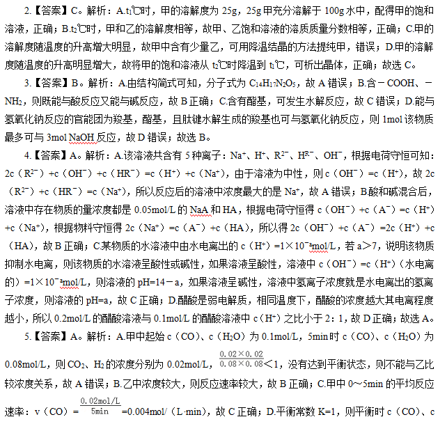 1.【答案】B。解析:A.漂白粉种含有次氯酸钙,在漂白粉中滴加醋酸,可增大HClO的浓度,则氧化性增强,可增大漂白速率,故A正确;B.硫酸铜为重金属盐,对人体有害,不能用于食品防腐,故B错误;C.维生素C具有还原性,可防止亚铁被氧化,可在口服硫酸亚铁片时同服维生素C,可增强治疗缺铁性贫血效果,故C正确;D.乙烯具有催熟作用,高锰酸钾可氧化乙烯,因此在水果箱内放入高锰酸钾溶液浸泡过的硅藻土,可起到保鲜的作用,故D正确;故选B。