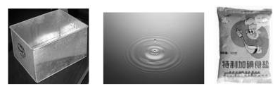 【教师提问】教师展示铁、水、食盐的三幅图片,请学生说出各个物质是由什么粒子构成的。