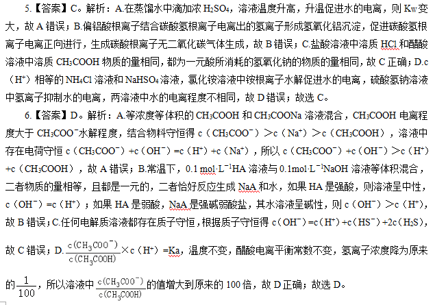 4.【答案】B。解析:①为吸热反应,升温平衡正向移动,转化率增大;②恒容通入惰性气体,平衡不移动,转化率不变;③增加CO的浓度,平衡逆向移动,转化率减小;④该反应为气体体积增大的反应,体积增大,压强减小,减压平衡正向移动,转化率增大;⑤加催化剂,平衡不移动,转化率不变;⑥恒压通入惰性气体,相当于减小压强,减压平衡正向移动,转化率增大,故选B。