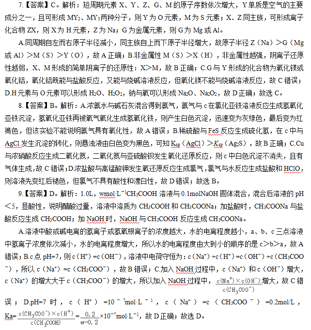 10.【答案】C。解析:A.金属钠易与空气中氧气反应、易与水反应,与煤油不反应且密度比煤油小,保存在煤油中可隔绝空气,防止钠变质,故A正确;B.因氯水中次氯酸见光容易分解,应用棕色瓶保存,故B正确;C.玻璃中含有SiO2,易与氢氧化钠反应生成具有黏性的硅酸钠而使玻璃塞打不开,保存氢氧化钠溶液时不能用玻璃塞,应用橡皮塞,且溶液应存放在细口瓶中,故C错误;D.硫酸亚铁易被氧化为三价铁离子,可以加入少量的铁粉,防止亚铁离子被氧化,故D正确;故选C。