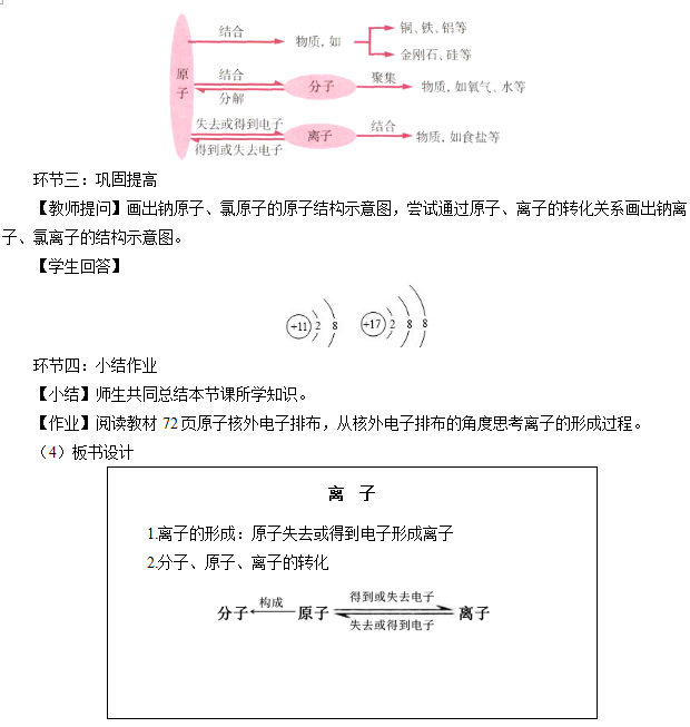 【知识与技能】了解离子的形成过程,初步认识离子是构成物质的一种粒子;知道分子、原子、离子之间是如何转变的。