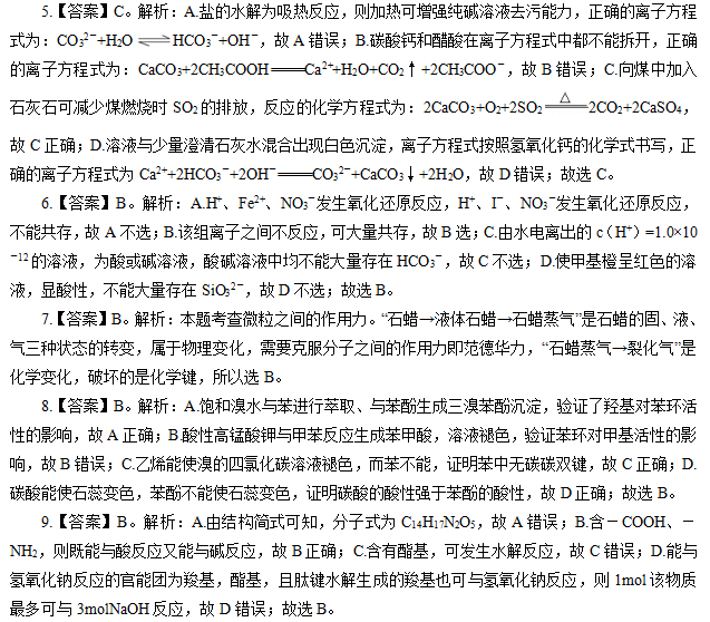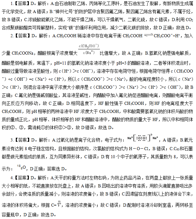 《高中化学》参考答案及解析
