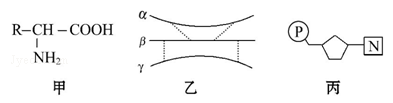 11.图甲、乙、丙为组成生物体的相关化合物,乙为一个由α、β、γ三条多肽链形成的蛋白质分子,共含271个氨基酸,图中每条虚线表示由两个巯基(﹣SH)脱氢形成一个二硫健(﹣S﹣S﹣)。下列相关叙述不正确的是( )。
