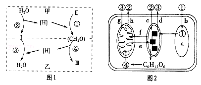 (1)图1甲过程中“Ⅰ”是________,其在________(答具体结构)上产生;该物质用于乙过程的________阶段,该阶段所发生的场所是________(答具体结构)。