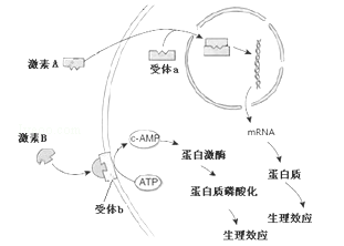 18.如图为人体激素作用于靶细胞的两种机理示意图,说法错误的是( )。