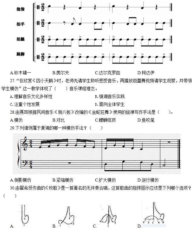 26.下列谱例所表现的是以下哪位音乐教育家的教育理念?( )