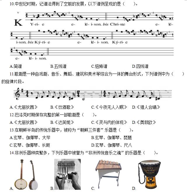 2.秦汉时期吹管乐器和弹弦乐器乐器发展引人瞩目,下列图片中该乐器是( )。