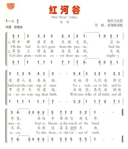 教学内容:学唱加拿大民歌《红河谷》