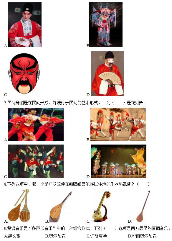 6.京剧角色分生、旦、净、丑四个行当,下列图片哪一个是净行( )。