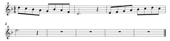 31.根据谱例中旋律运用同头异尾的旋律发展手法创编旋律(结尾运用终止式)。