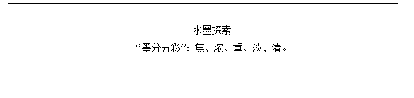 教师小结:随着水分的不断加入,墨的颜色也产生了不同的变化。古人有“墨分五彩”之说,即焦、浓、重、淡、清。