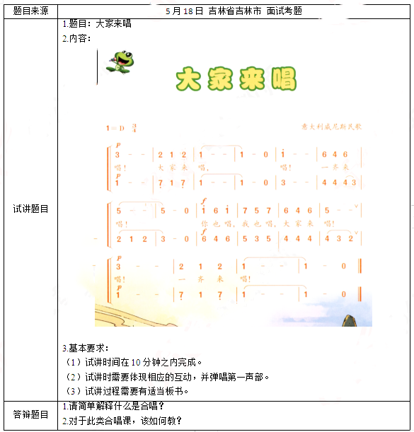 2019上半年小学音乐教师资格面试真题及答案(第一批)