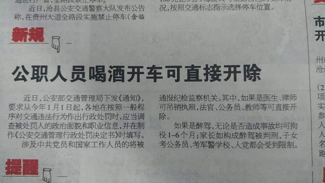 添加时间: 2018-02-23 17:21:27内容摘要:2018新规:法官、公务员、教师等喝酒开车可直接开除!其中如果是医生、律师可吊销执照,法官、公务员、教师等可直接开除;并且如果是醉驾无论是否造成事故可拘役1-6个月;还有家长醉驾的话,子女考公务员、考军警学校、入党都会受到限制。