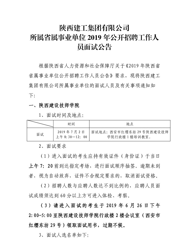 上一篇:陕西建工集团有限公司 所属省属事业单位2019年公开招聘工作人员面试公告 下一篇:最后一页