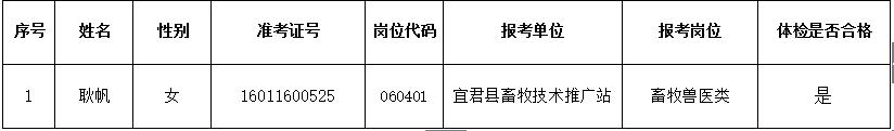 根据《2016年铜川市农村基层人才队伍振兴计划公开招聘工作人员公告》有关要求,因宜君县畜牧技术推广站(060401)岗位原拟聘人员在公示期内(9月30日)放弃招聘资格,根据招聘公告精神,按照公示期内递补程序,现将拟聘用递补人员基本情况予以公示。